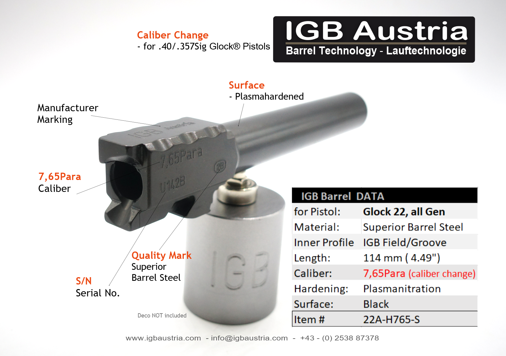IGB Austria fertigt aus dem Vollmaterial, vom Stahl bis zum Rohling und fertigen Produkt im Haus. Unabhängig von anderen Rohlingerzeugern, kann IGB die beste Stahlgüte einkaufen und im Haus verarbeiten. IGB bietet Läufe für ALLE Glockmodelle, für ALLE Generationen in jeder Länge und Ausführung.