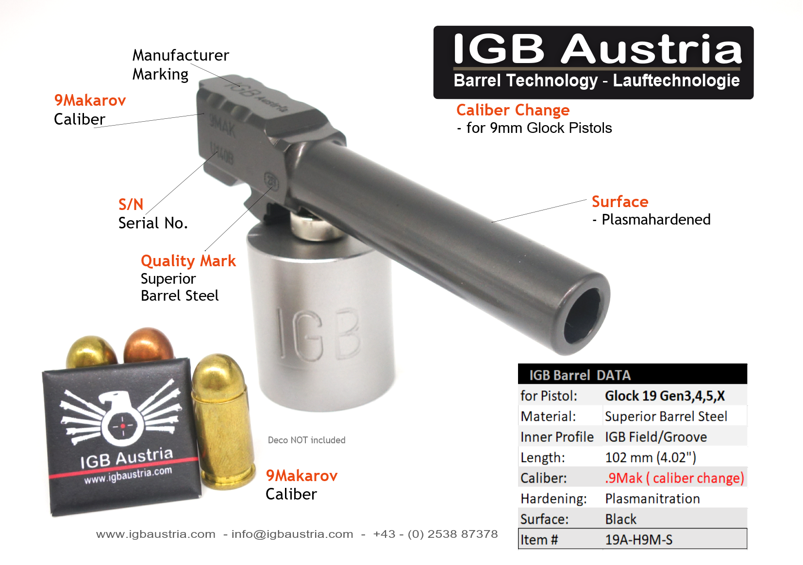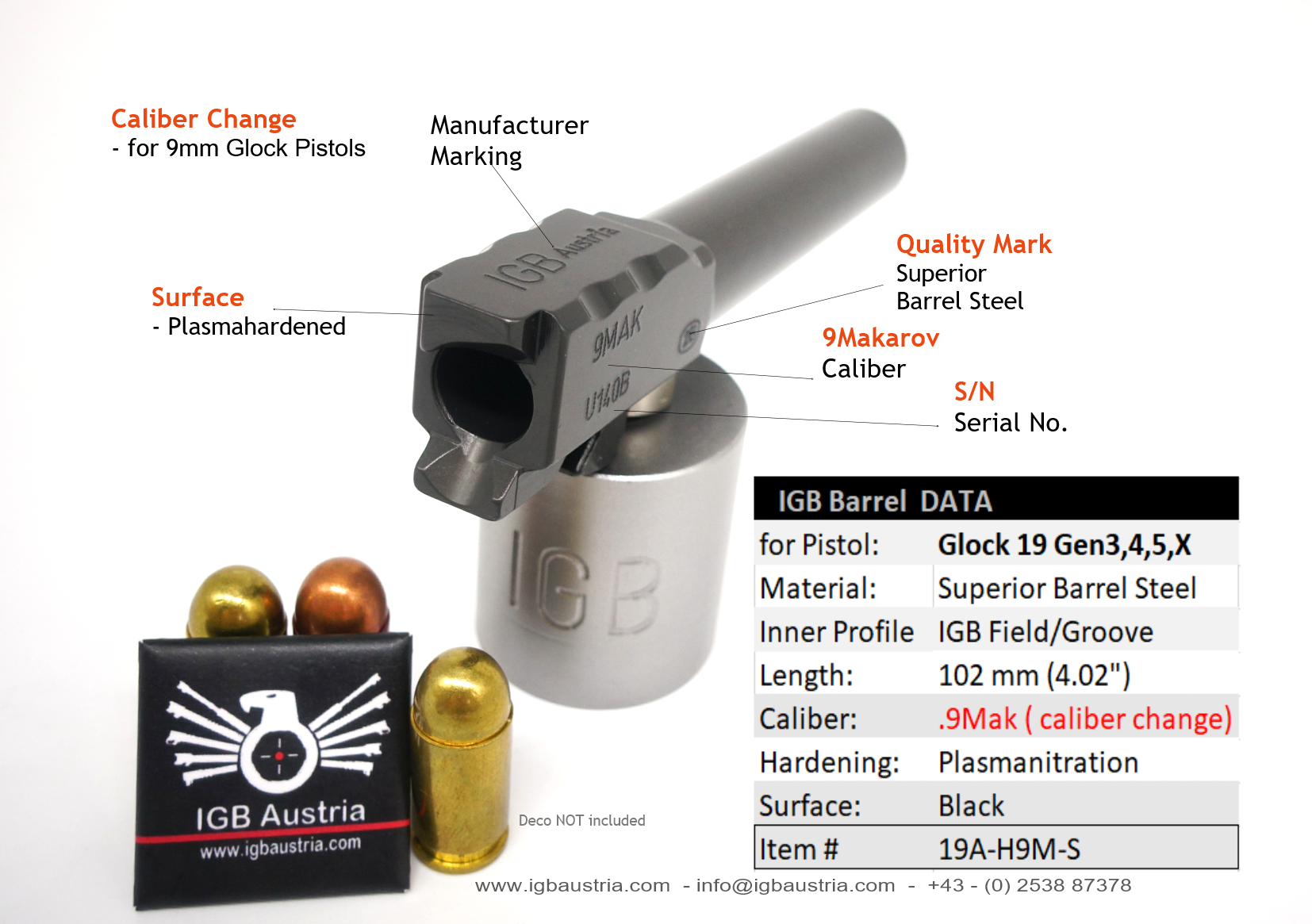 IGB Austria fertigt aus dem Vollmaterial, vom Stahl bis zum Rohling und fertigen Produkt im Haus. Unabhängig von anderen Rohlingerzeugern, kann IGB die beste Stahlgüte einkaufen und im Haus verarbeiten. IGB bietet Läufe für alle Glock Generationen, jede Länge und Ausführung. Falls das gewünschte Produkt nicht im Shop sichtbar ist, schreiben Sie uns eine Email oder nutzen Sie die Möglichkeit "Frage zum Produkt stellen".